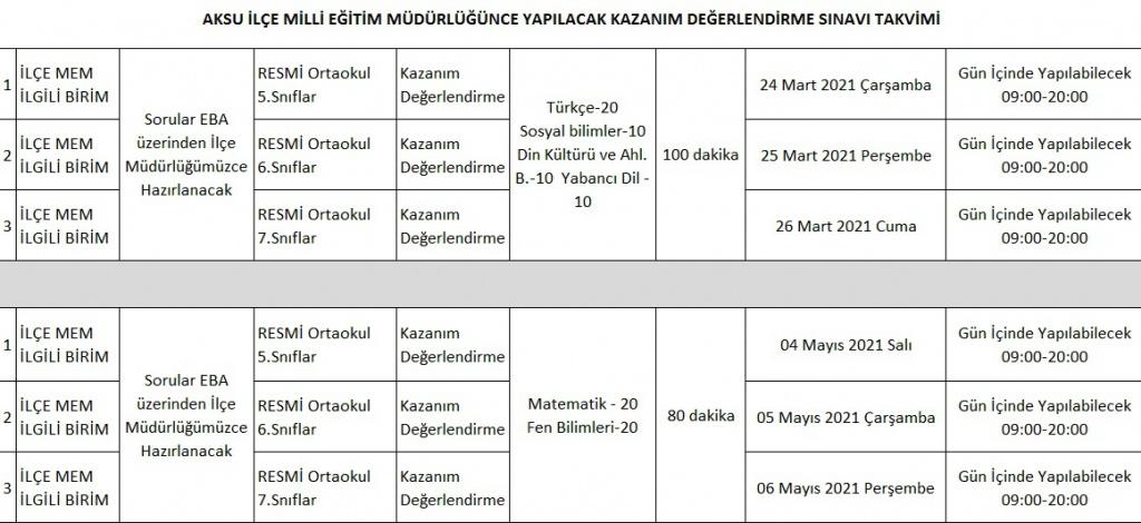 5. 6. ve 7. Sınıf öğrencilerimiz için ilçemizde kazanım değerlendirme sınavları yapılması planlanmıştır.